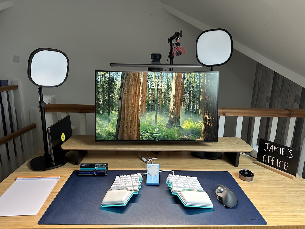 • Monitor bar BenQ Halo 2. This is a new addition but I’m loving it so far, particularly as we go into the dark days of autumn. It provides a nice soft light down on the desk without directing it in my eye or on the screen itself. It also holds the webcam and the desk-based control is the nicest product design I’ve experienced in a long time. Ridiculous amounts of joy.